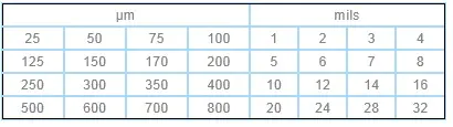 用于對新涂的濕涂層進行快速簡易的厚度測量。只需將儀器伸入濕涂層里,直到接觸到底材,從16個不同的測量點讀出厚度值。刻度如下: